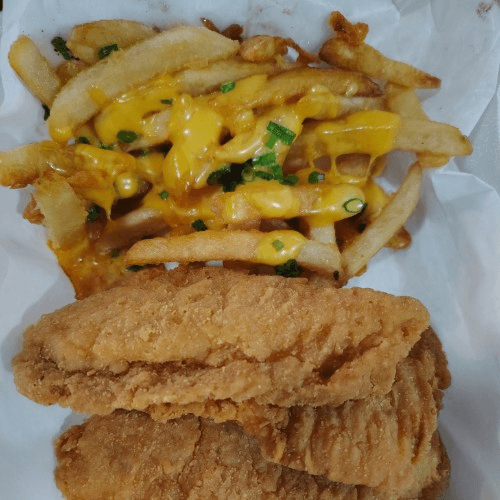 With home fries and grilled onions all topped with cheddar cheese. Served with biscuit & gravy. Eggs: over easy, over medium, over hard, or scrambled.