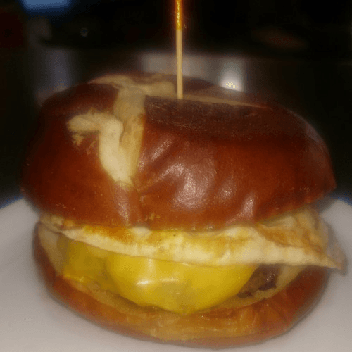 Choice of cheese--American, cheddar, pepper jack, or Swiss on English or pretzel bread. Egg: over easy, over medium, over hard, or scrambled.